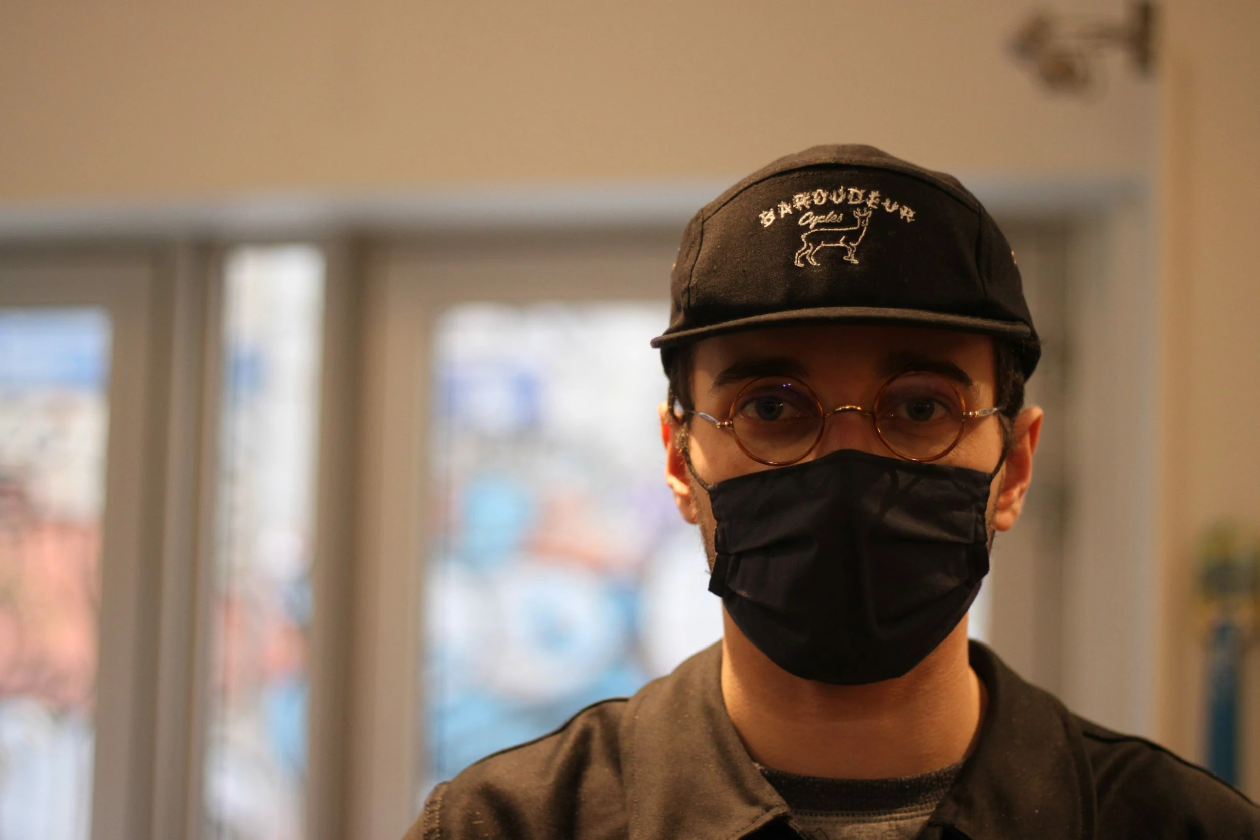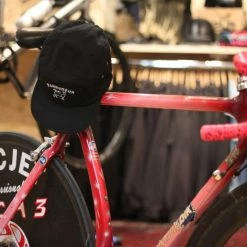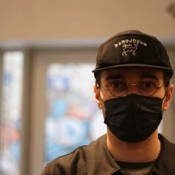 Casquette five panel brodée par MAXI MEGA Print Shop à Lyon, sur la base d’une typographie dessinée par Denis Carrier de Studio Folk.